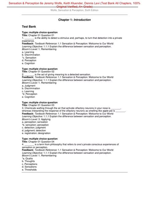 Read SENSATION AND PERCEPTION WOLFE TEST BANK ANSWER Doc